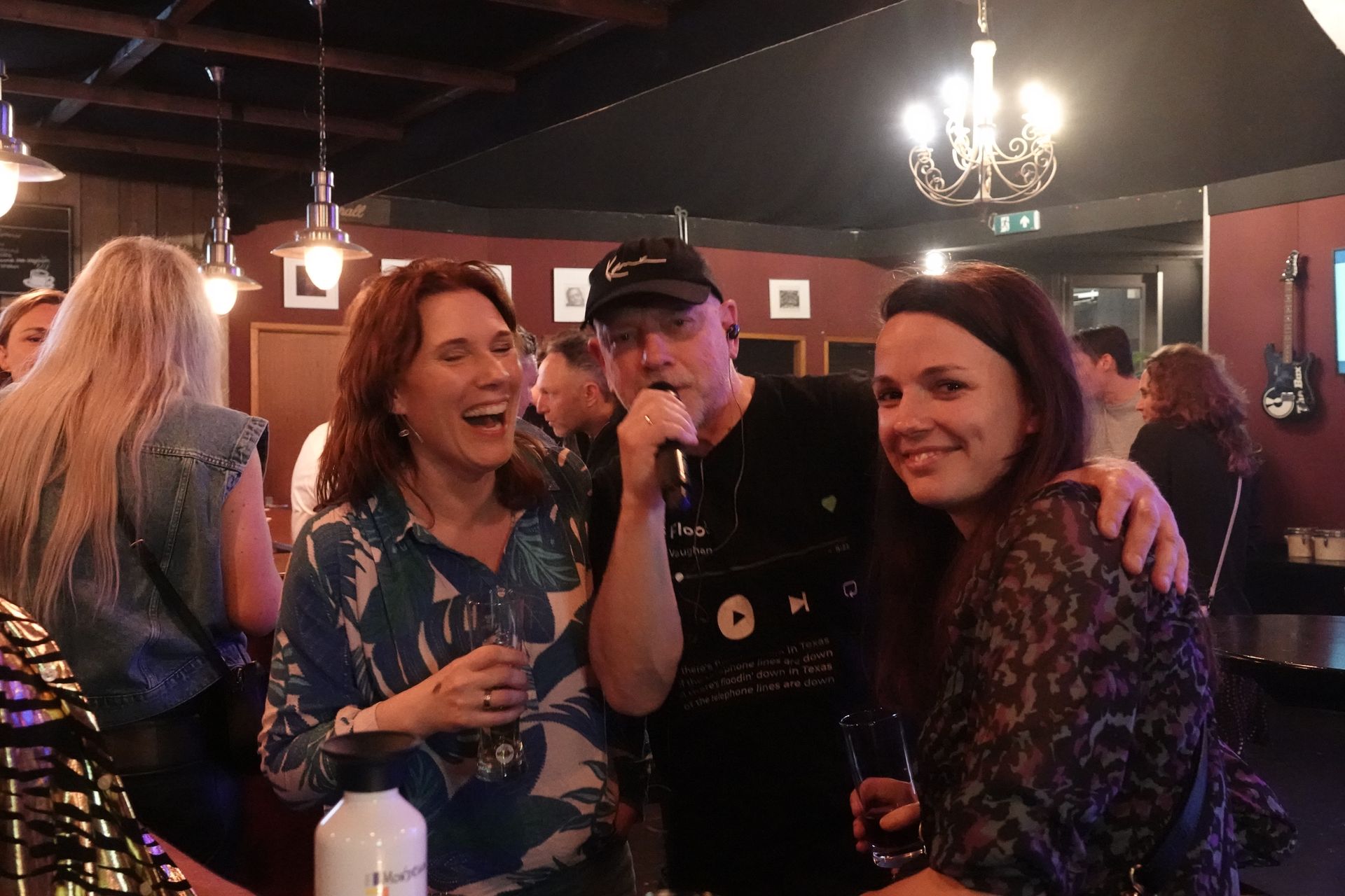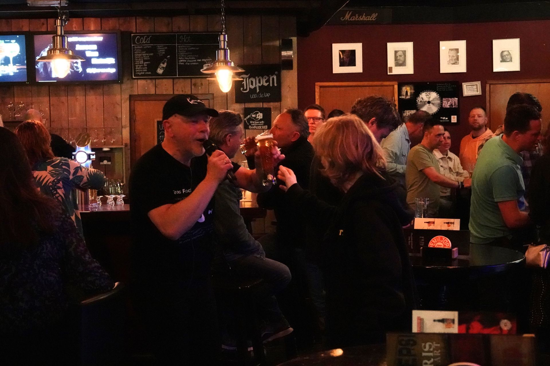 Met tomeloze energie voert een zeer beweeglijke Ed de bende aan. Staat zo ongeveer meer in het publiek dan op het podium zijn vocalen de ruimte in te articuleren of het niks kost, hierin meermalen bijgestaan door Bob en Stephan die de gitaren hanteren. Bob staat sublieme slag en solopartijen het café in te jakkeren waarbij je je werkelijk afvraagt of hij aan elke hand wellicht 6 vingers heeft. Dat koste hem wel een snaar, dus ff hobbyen, maar No Excuse kachelt ondertussen gewoon door. Zo doe je dat…dus!